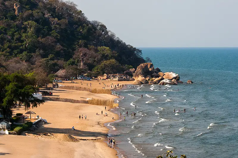 End your trip at the golden sandy beaches and turquoise waters of Cape Maclear.